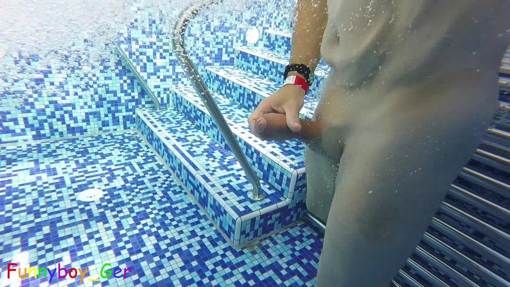 Underwater: I jerk off my hard cock and hike in a nude thermal pool. I wanted to cum, but then someone came.