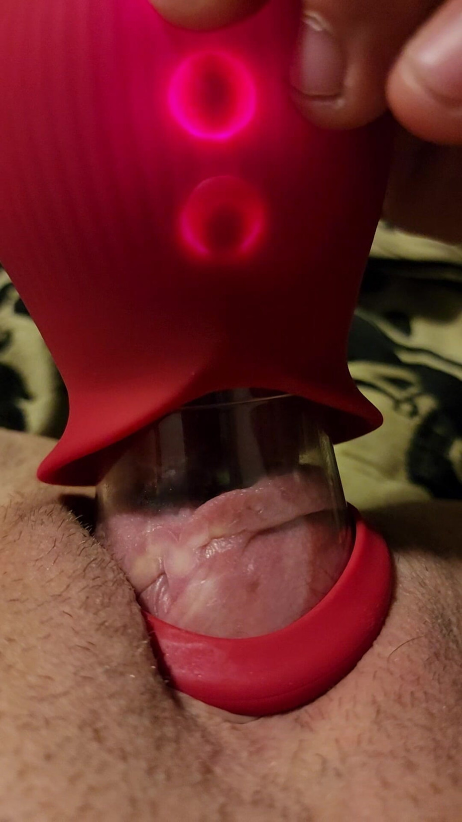 I can't get enough of my toys. The sucking licking is intense on my quivering pussy. It sucks my pussy lips up inside