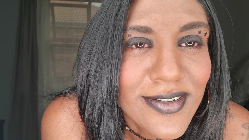 Close up view of Indian slut, she constantly plays with her lips and bright pink tongue as she dirty talks about having her lips, tongue wrapped around your cock, having her soft lips on yours.