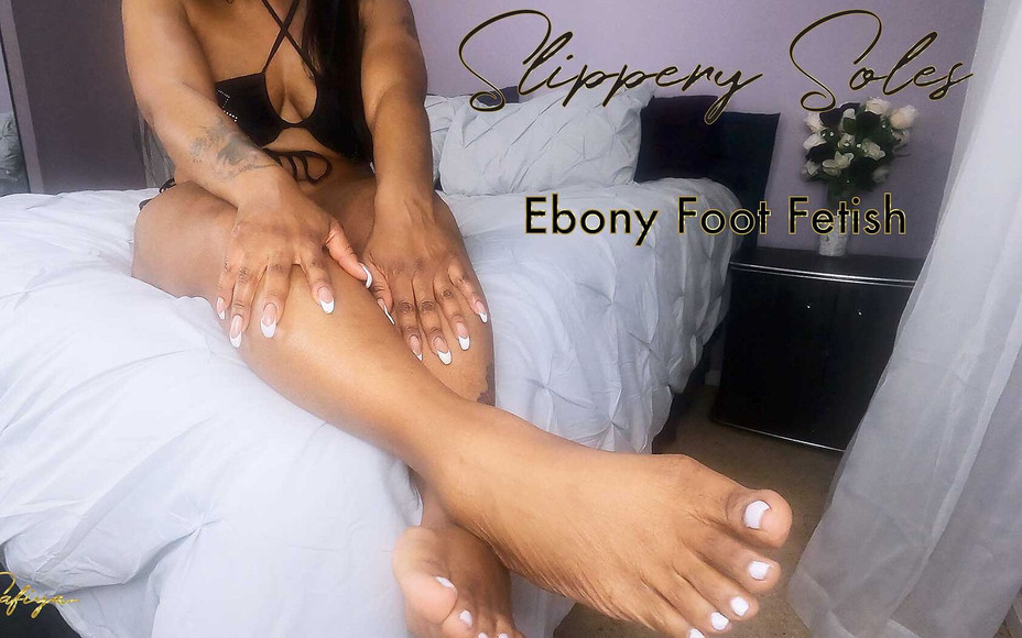 It's been a long day, and my feet are waiting for you to service them. Be a good boy! Get down on your knees and massage my oiled-up Ebony Goddess Soles. I know you love how my white toenails look on my pretty brown feet. Enjoy it while you can! You're lucky to be this close to my sexy toes.