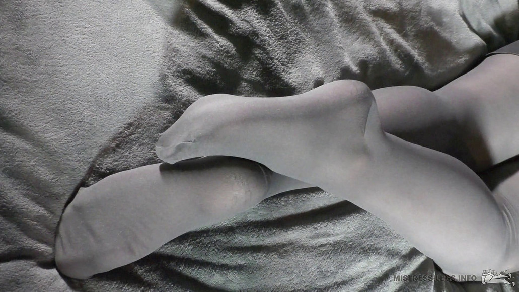 High-resolution feet closeups. Mistress's legs are resting on the bed in the grey opaque pantyhose. As always enticing close-ups of soles in the tights. Mistress's feet are so close and real, that you can touch her tasty toes by your tongue, right through your screen. Mistress's feet are teasing you...