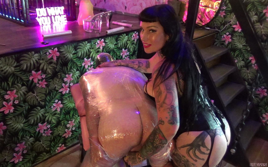 Silent, enjoying, surrendered. Completely wrapped in foil and fixed on the SM piece of furniture. Lady Vampira enjoys your silence and follows your breathing. Layer by layer, hand over your mouth, only as much air as she wants and you don't need. Queen of Tease and Denial, Orgasm Control Goddess, and sadistic FemDom. But in this session, she will push you to your limits with particularly erotic dominance and sensual breath control!