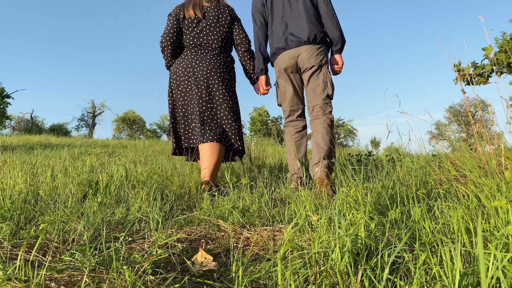 Golden hot stream from my mother-in-law's pussy in nature